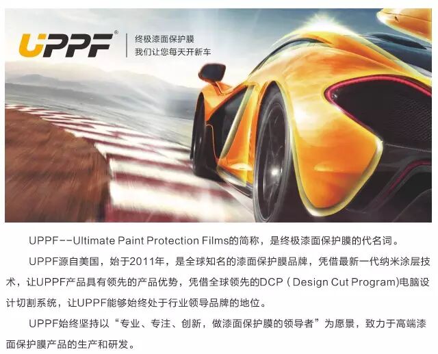 UPPF(优帕)汽车保护膜耐变黄、不开裂、易清洗!顶级名车漆面保护的最佳保护方案,UPPF(优帕)——最好的选择,最佳的保障!360度保护您的爱车,让您每天开新车!