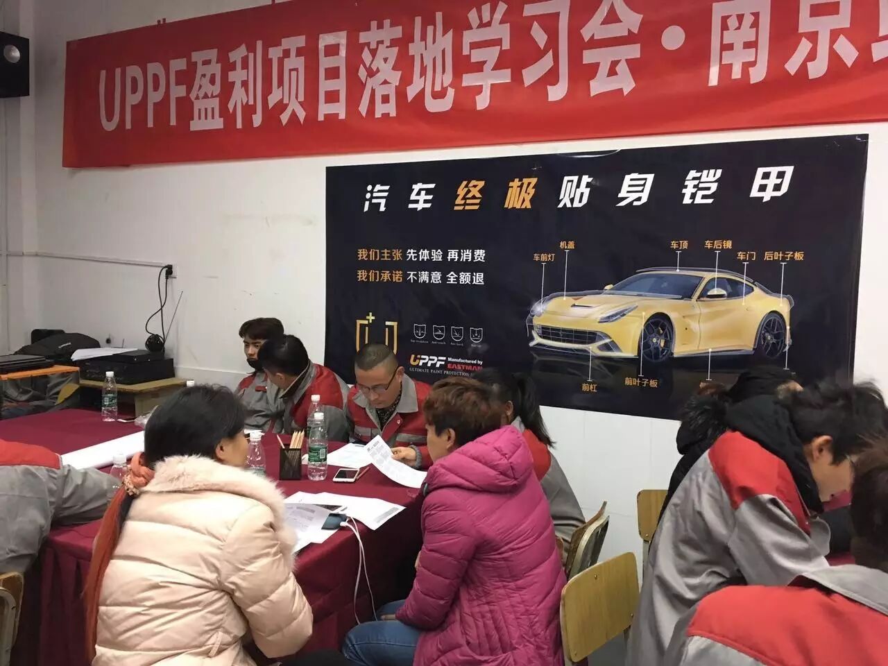 此次学习为期5天,主要是通过深入学习UPPF产品、产品营销、行业动态、市场发展方向、透明膜施工技术,对学员深入灌输技术指导,让学员掌握最新、最先进的配套设备与技术的同时,还通过一对一的实战训练让学员掌握透明膜施工技术、自主经营能力和多种营销技巧。帮助提升学员的营销力,充分了解卖点、产品特性及销售话术从而更好的销售产品。